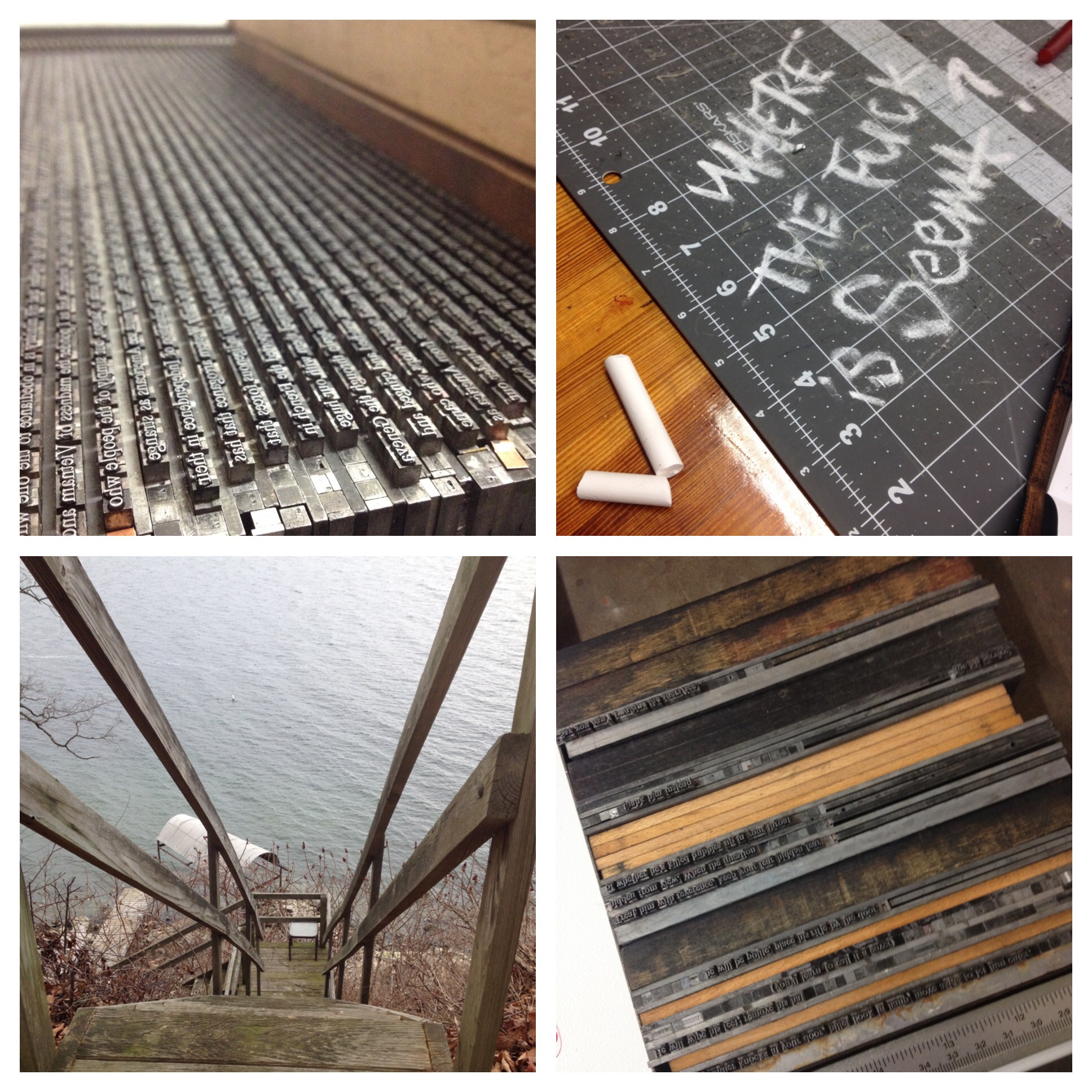 This weekend I visited an awesome papermaking/letterpress studio some dear friends have set up near Ithaca.  I traveled there to collaborate on an art book.  I wrote the poem.  I think this is the first time I’ve collaborated with this many people on an idea of my own. We looked very seriously at every choice–turning it from ‘mine’ to ours.  Joe did the illustrations. Laura knows letter press and layout. Nate had ideas about binding and materials. Kevin is a brilliant editor. Eli is working on the design of the cover and epigraph.  Everyone made paper.